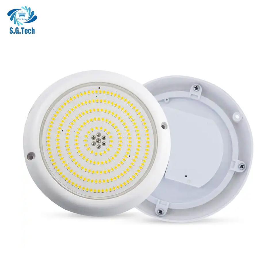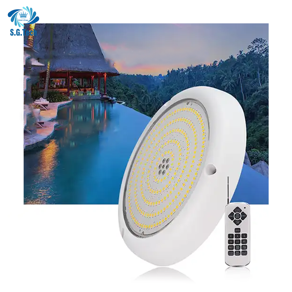 ไฟใต้น้ำสำหรับสระว่ายน้ำคุณภาพสูง รุ่น Water Crown มาตรฐาน IP68 ผลิตจากวัสดุ ABS + PC ได้รับการรับรองมาตรฐาน CE ใช้ไฟ 12V หลอดไฟ LED RGB 18W แบบเปลี่ยนได้