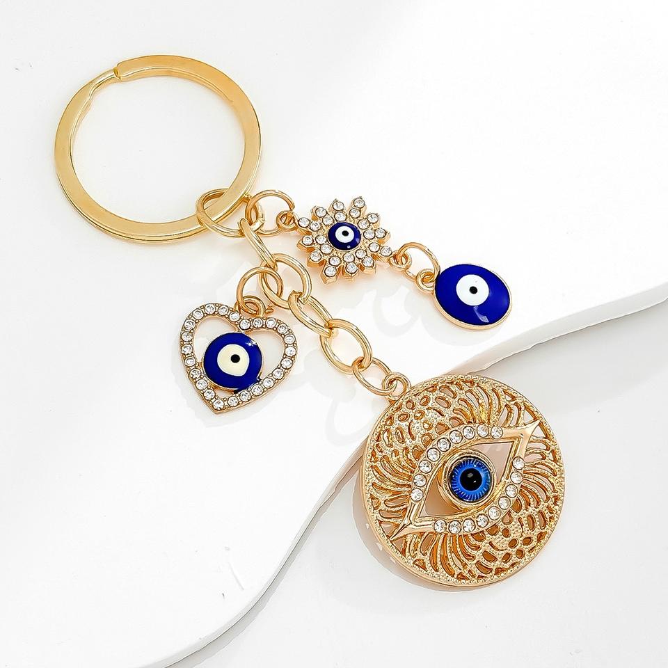 พวงกุญแจรูปหยดน้ำปีศาจพวงกุญแจไรน์สโตนสำหรับเพื่อนกระเป๋าตาสีฟ้าเคลือบมาพร้อมกล่องใส่โทรศัพท์