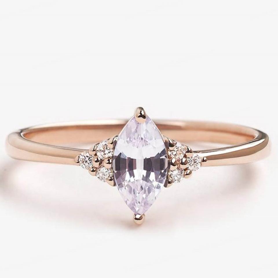 ควอตซ์รูปหยดน้ำ ควอตซ์ลาเวนเดอร์ในตัวเรือนทอง 14K ประดับเพชร แฟชั่นควอตซ์ลาเวนเดอร์สำหรับงานแต่งงาน