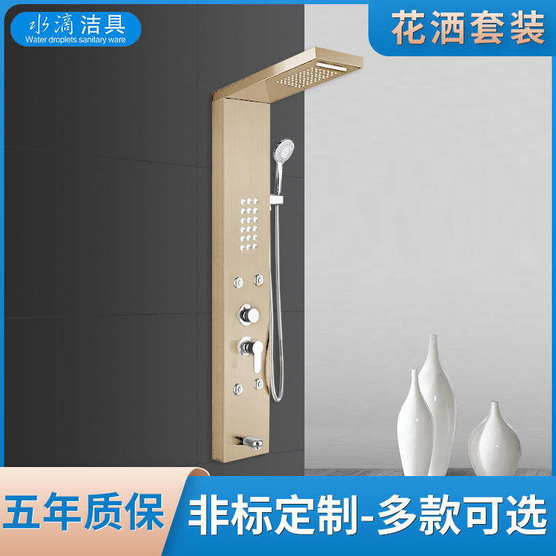 ชุดฝักบัวสุขภัณฑ์แบบหยดน้ำ วัสดุสแตนเลส 304 พร้อมฝักบัวแบบแขวน จอแสดงผลดิจิตอล และไฟ LED
