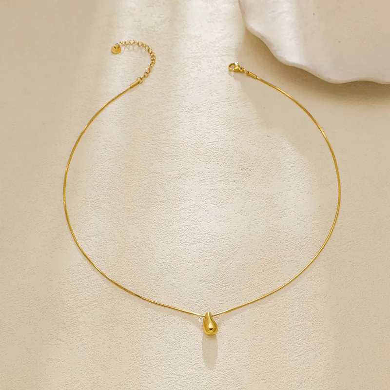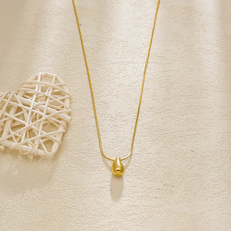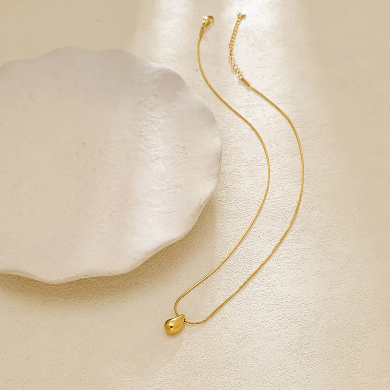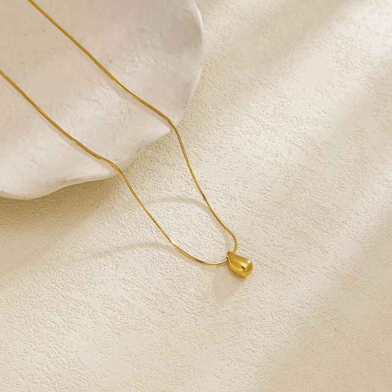 สร้อยคอจี้หยดน้ำสำหรับผู้หญิง ชุบทอง 18K สแตนเลส 304 พร้อมสายโซ่แบบงู กันน้ำ ไม่หมอง