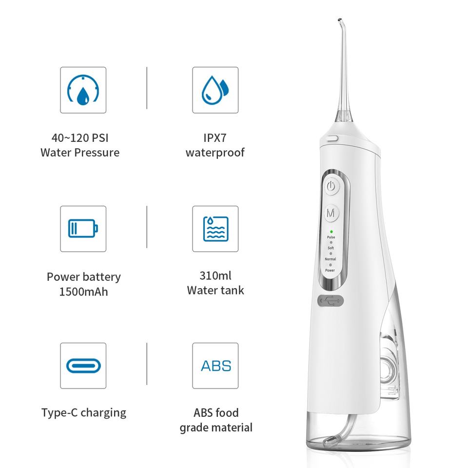 เครื่องทำความสะอาดฟันด้วยน้ำแบบพกพา รุ่น C2 พร้อมแบตเตอรี่ กันน้ำระดับ IPX7 และแรงดันน้ำมากกว่า 5 ระดับ