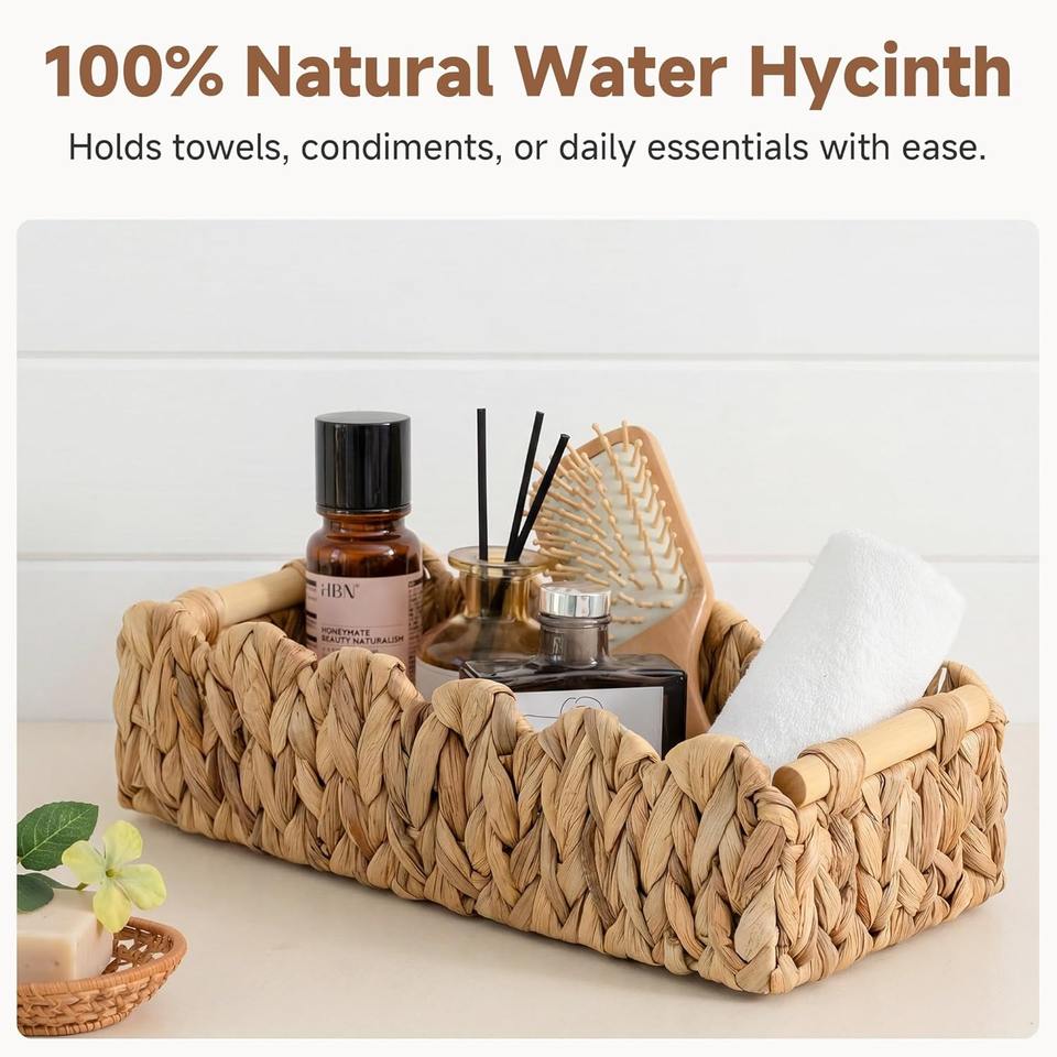 ตะกร้าผักตบชวาพร้อมหูจับไม้ ตะกร้าเก็บของทำมือ ขายส่ง เป็นมิตรกับสิ่งแวดล้อม ผลิตในเวียดนาม