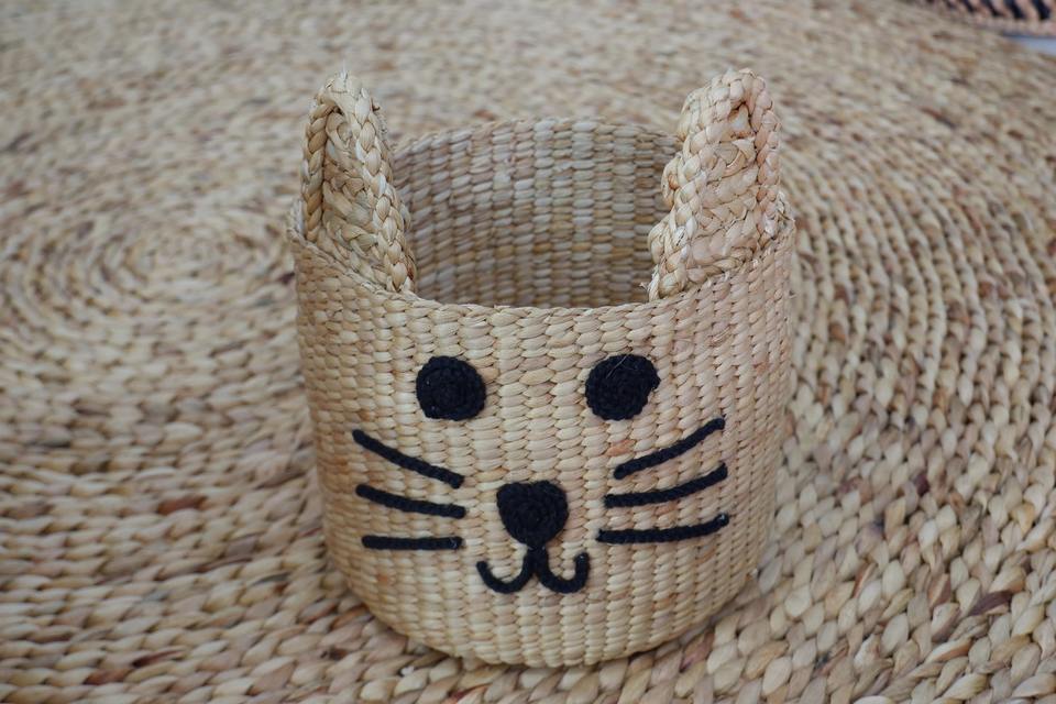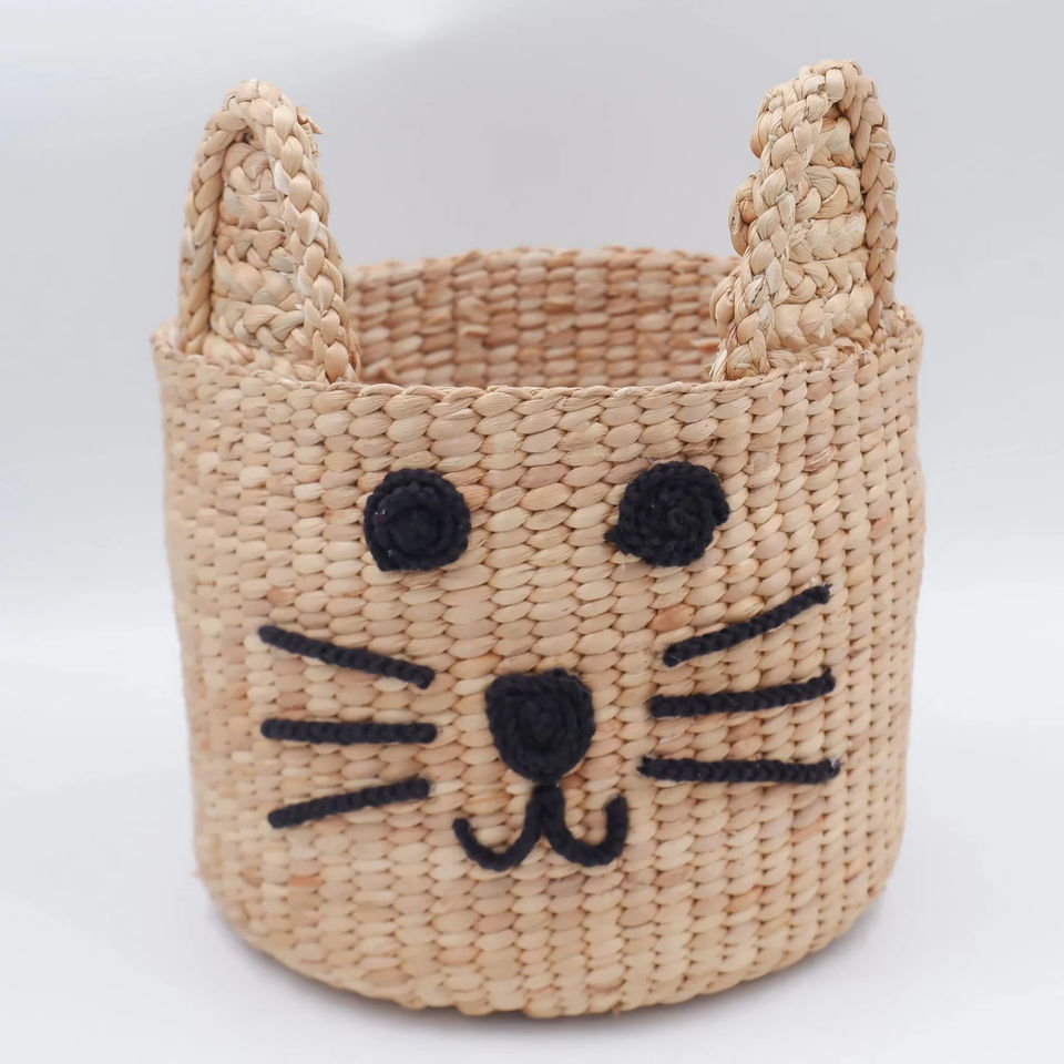 ตะกร้าแมวทำจากผักตบชวา ตะกร้าเก็บของทำมือ ขายส่ง เป็นมิตรกับสิ่งแวดล้อม ผลิตในเวียดนาม