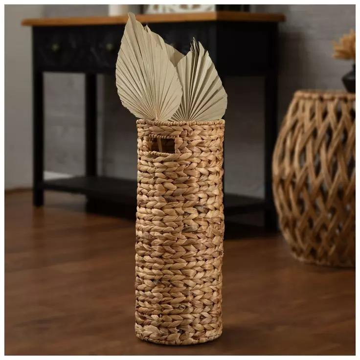 ขนาด: D8 x H19,7 นิ้ว:ตะกร้าทรงกระบอกผักตบชวา