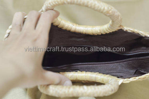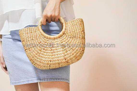 กระเป๋าถือ/กระเป๋าชายหาด/กระเป๋าโท้ท ทำจากผักตบชวา สีธรรมชาติ ขนาดเล็ก งานฝีมือเวียดนาม