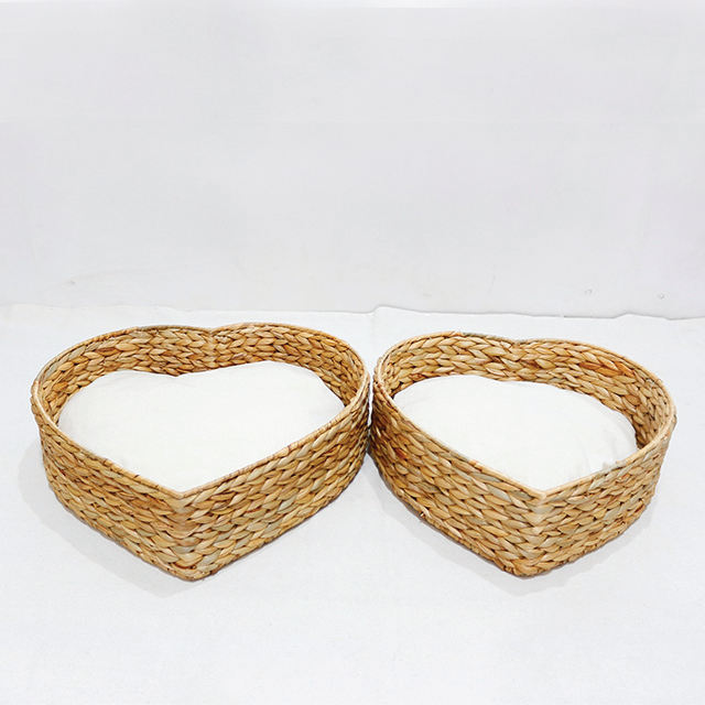 ที่นอนสัตว์เลี้ยงรูปหัวใจจากผักตบชวา ตะกร้าสานมือรักษ์โลก พร้อมเบาะนุ่ม