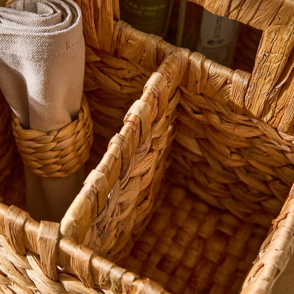 ตะกร้าหวายผักตบชวาสำหรับจัดเก็บของใช้ในบ้าน
