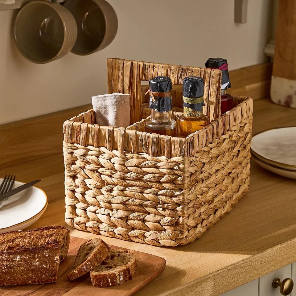 ตะกร้าเก็บของในบ้านทำจากผักตบชวา ตะกร้าเก็บของแฮนด์เมด ขายส่ง เป็นมิตรกับสิ่งแวดล้อม ผลิตในเวียดนาม