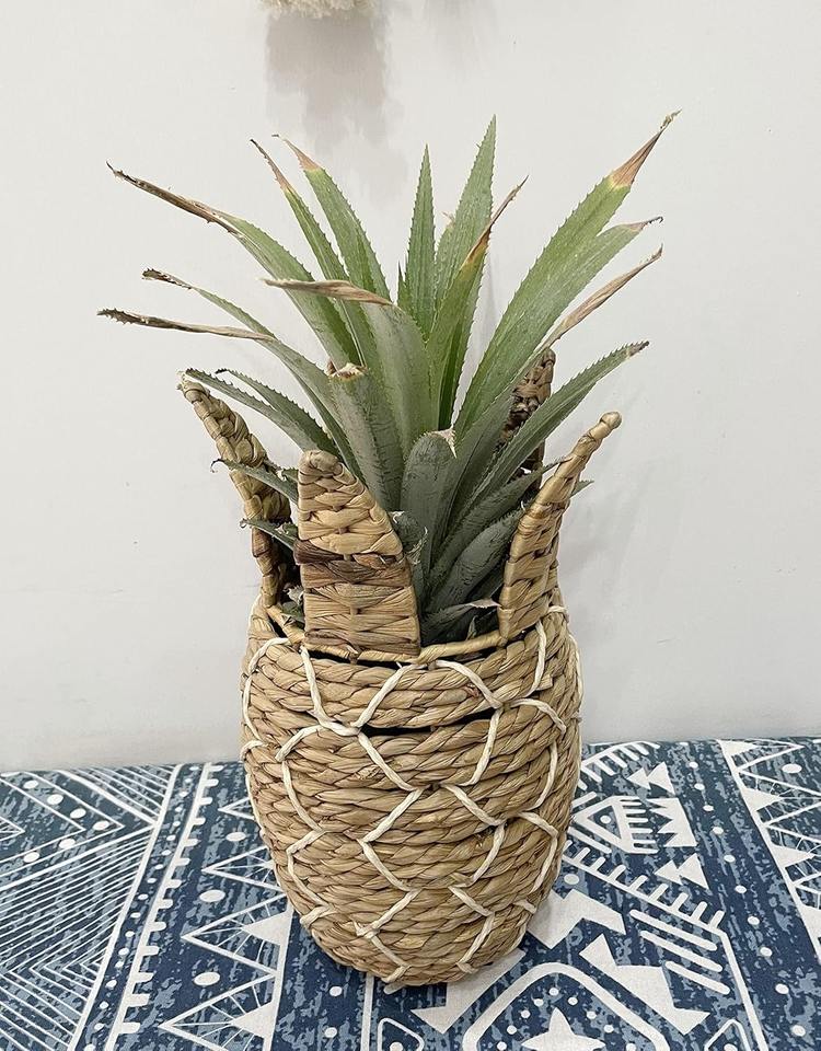 ที่จัดระเบียบของตกแต่งสับปะรดจากผักตบชวา:ขนาด: D8.7 x สูง 15.4 นิ้ว