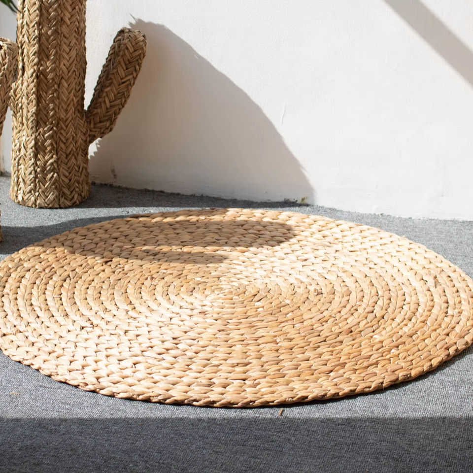 พรมผักตบชวาทำด้วยมือและเป็นมิตรกับสิ่งแวดล้อมทนทานสไตล์ชนบทเหมาะสำหรับการตกแต่งภายในห้องรับประทานอาหารห้องนั่งเล่นและบ้านแสนสบาย