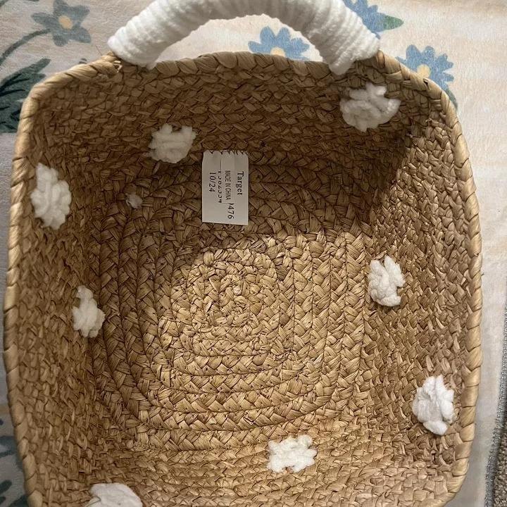 ขนาด: กว้าง 11.5 x สูง 7 นิ้ว:ตะกร้าใส่ของทรงสี่เหลี่ยม ปักลายดอกไม้ ทำจากผักตบชวา