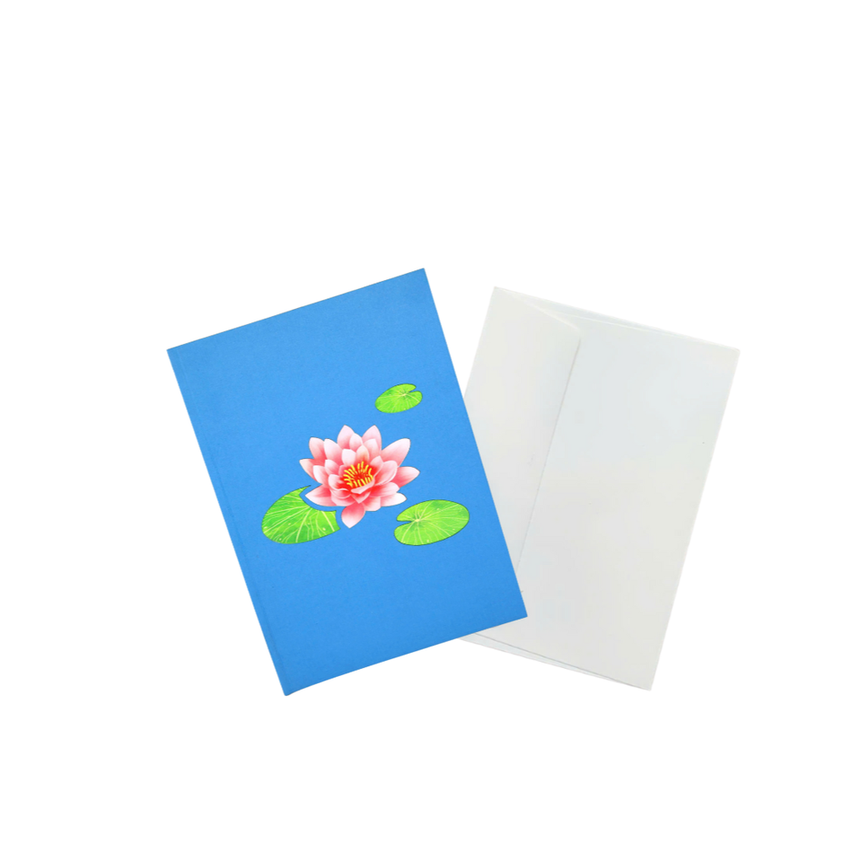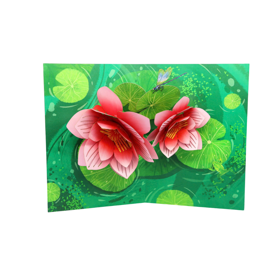 การ์ดป๊อปอัพ 3 มิติ ลายดอกบัวและแมลงปอ พร้อมซองจดหมาย การ์ดอวยพรลายดอกไม้ทำมือสุดหรูสำหรับทุกโอกาส