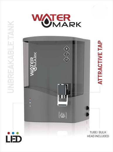 เครื่องกรองน้ำ RO ยี่ห้อ Water Mark ขนาด 9 ลิตร ถังเก็บน้ำแบบถอดได้ ตัวเครื่องทำจากพลาสติก ABS เกรดสำหรับอาหาร ติดผนังหรือวางบนเคาน์เตอร์ พร้อมไฟ LED แสดงสถานะ