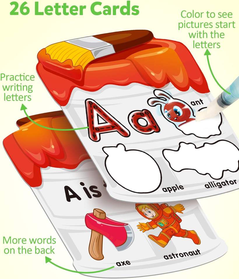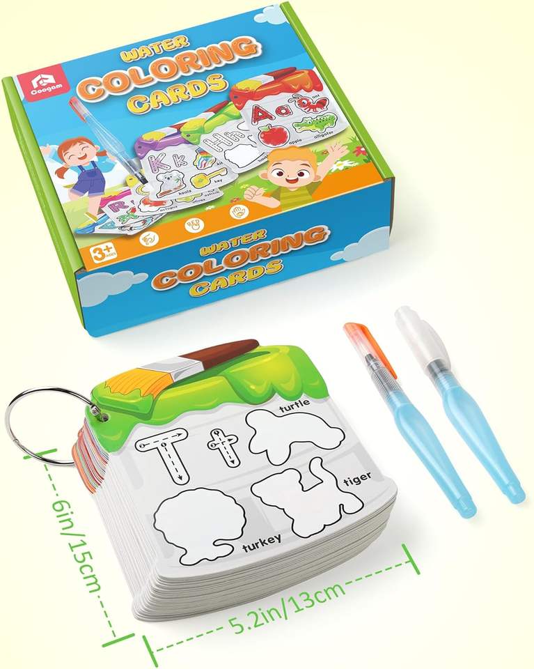 การ์ดระบายสีน้ำพร้อมการเรียนรู้ตัวอักษร, การ์ดคำศัพท์แบบใช้ซ้ำได้สำหรับการระบายสีน้ำ