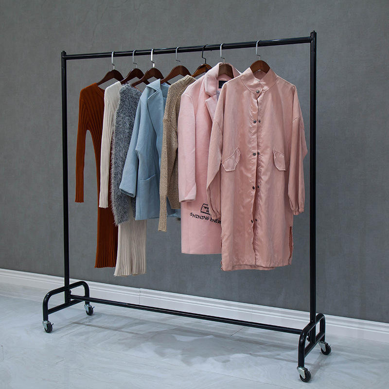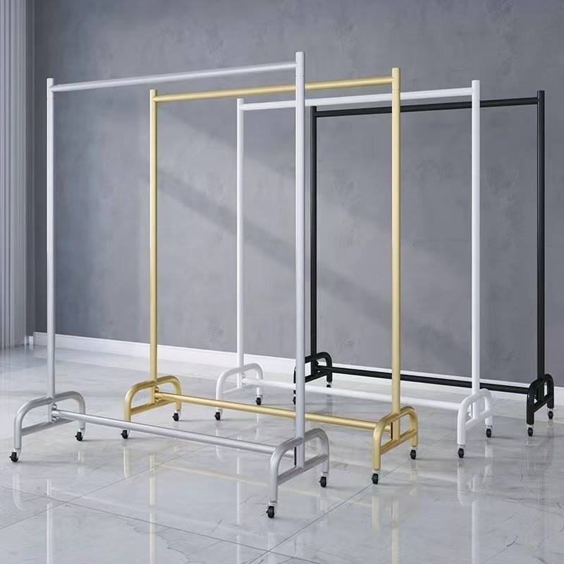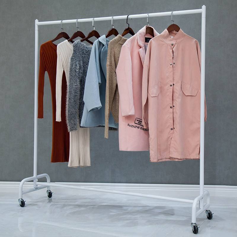 ราวแขวนท่อประปาพร้อมล้อเลื่อน ราวแขวนเสื้อผ้าแบบเคลื่อนที่ได้ ราวแขวนข้างเตียง ชั้นวางของโลหะทันสมัย