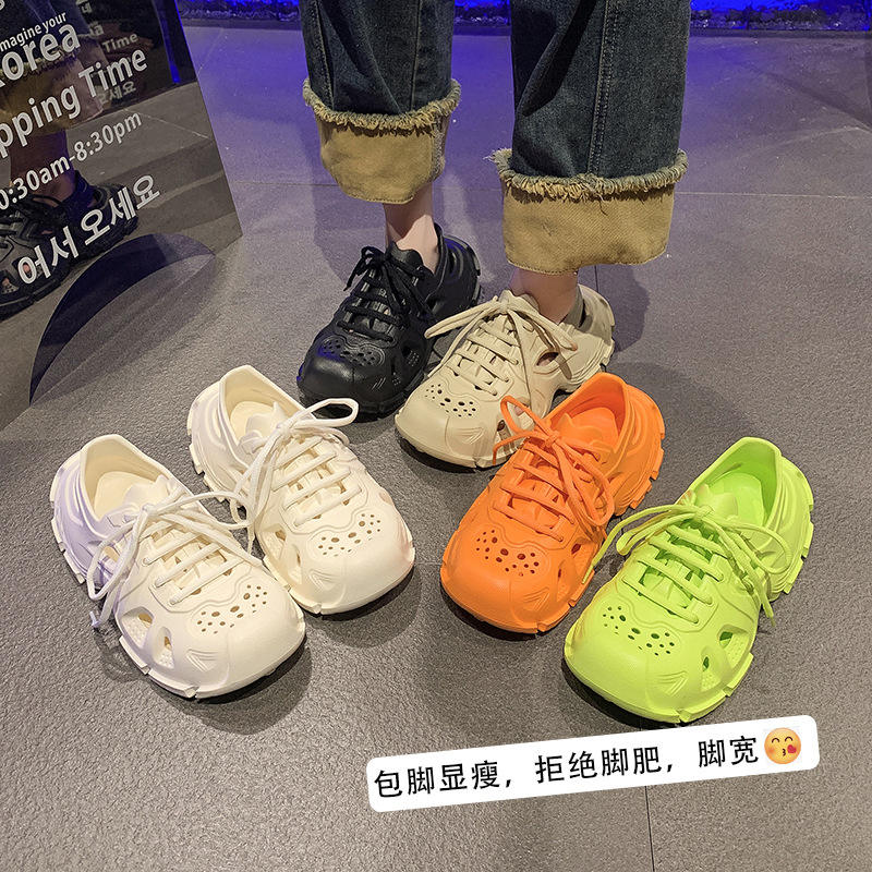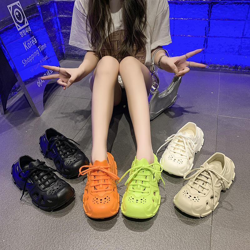 รองเท้าลุยน้ำรองเท้าเดินชายหาดแบบเจาะรูระบายอากาศได้ดีรองเท้าส้นเตี้ยสีพื้นพื้น