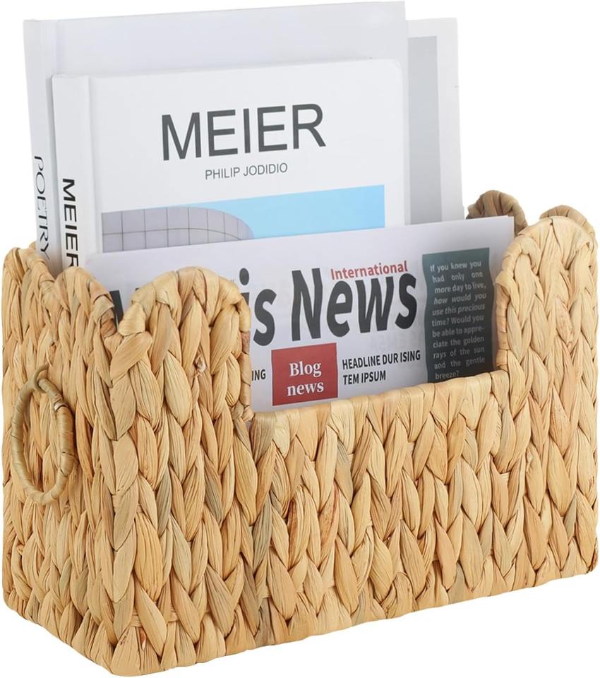 ตะกร้าผักตบชวาสำหรับวางบนโต๊ะ:ขนาด: ยาว 11.8 x กว้าง 5 x สูง 7.8 นิ้ว