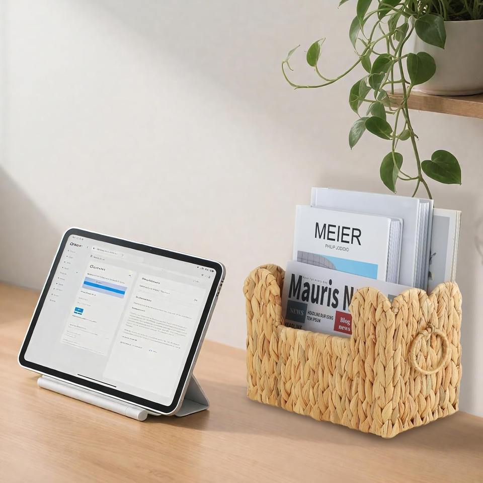 ตะกร้าผักตบชวาสำหรับวางบนโต๊ะ