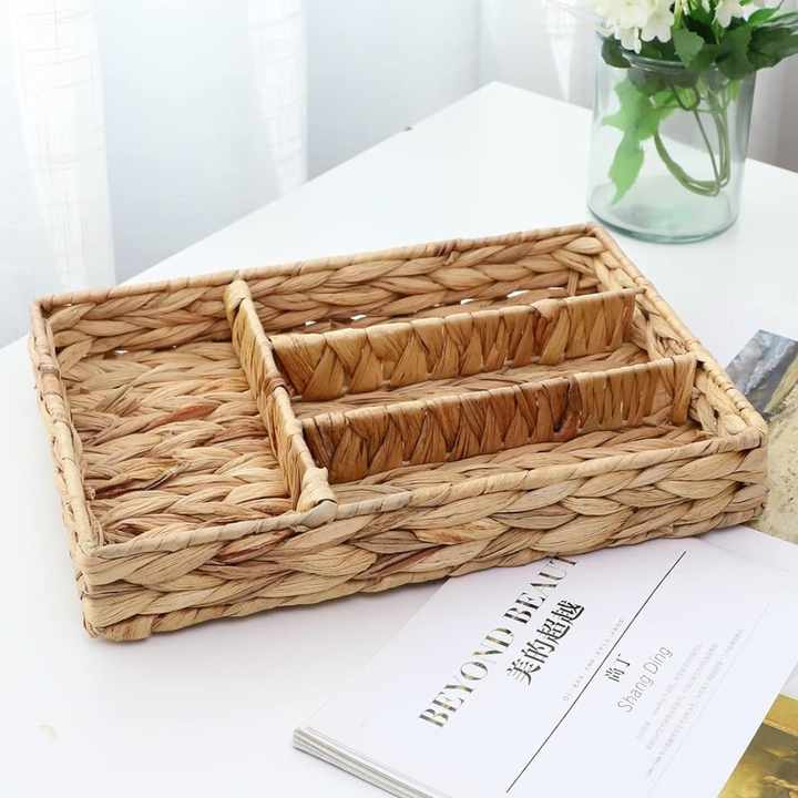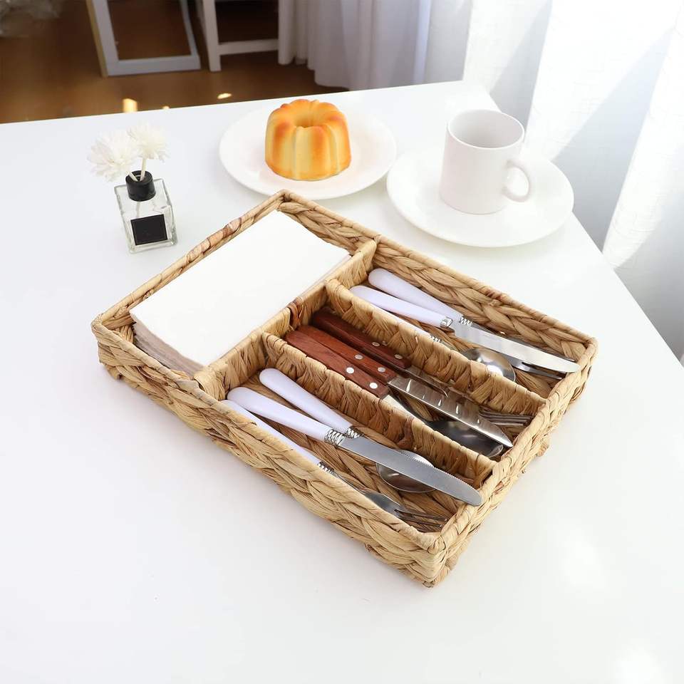 ถาดใส่ช้อนส้อมทำจากผักตบชวา ถักด้วยมือ สำหรับจัดระเบียบช้อนส้อม