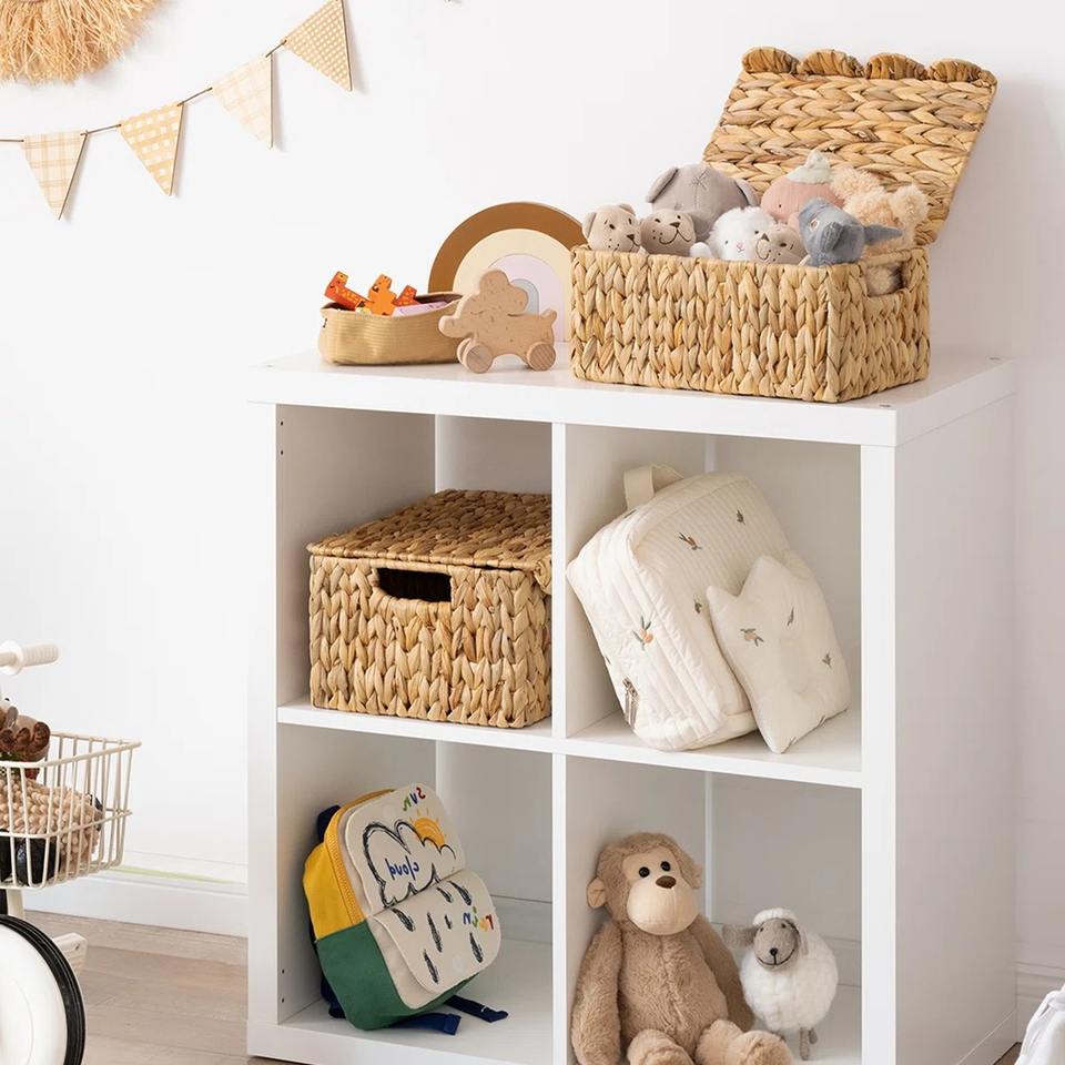 กล่องเก็บของผักตบชวาพร้อมฝาปิดลายเปลือกหอย ขนาด L15 x W11.3 x H7