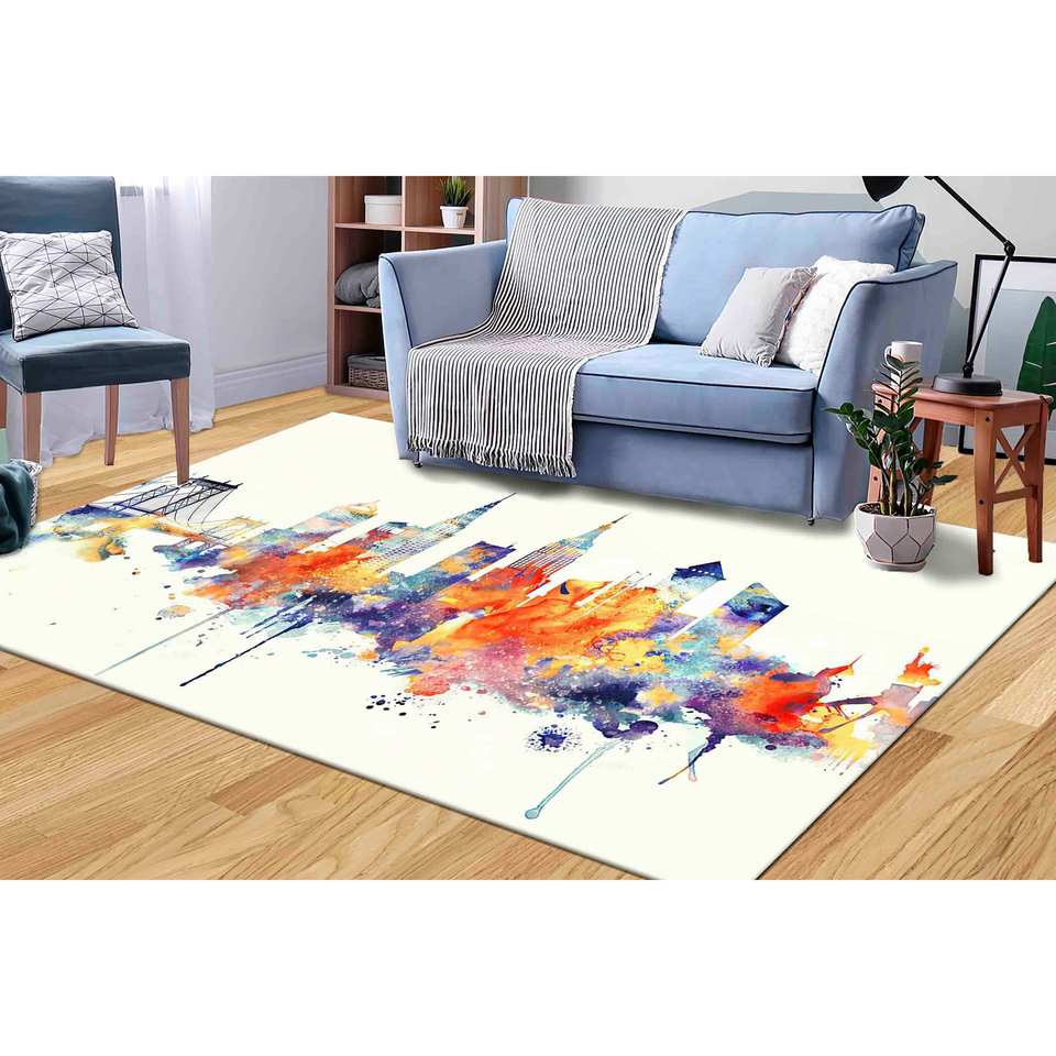 พรมลายวอเตอร์คัลเลอร์ทิวทัศน์นิวยอร์กซิตี้: พรมพิมพ์ลายนามธรรมสมัยใหม่ พรมเชนิลล์