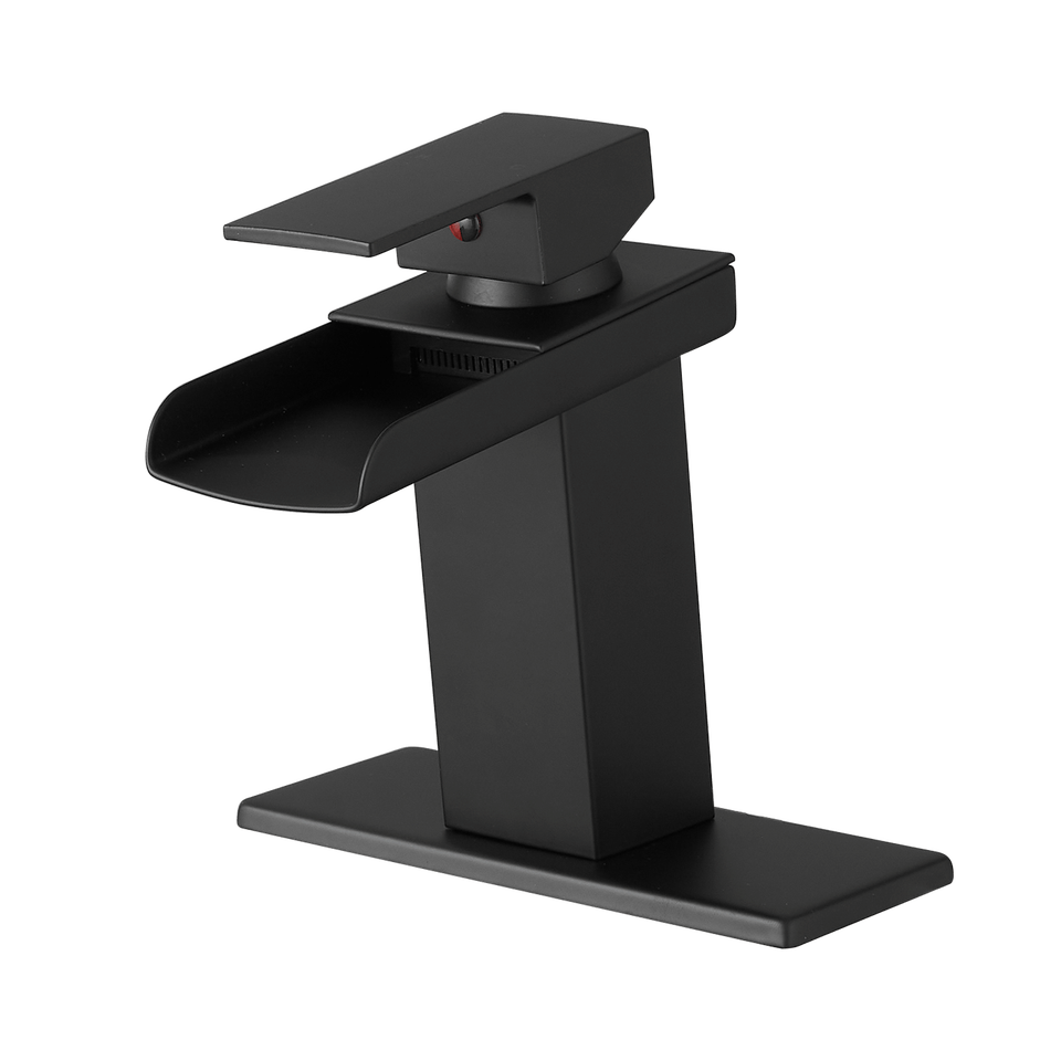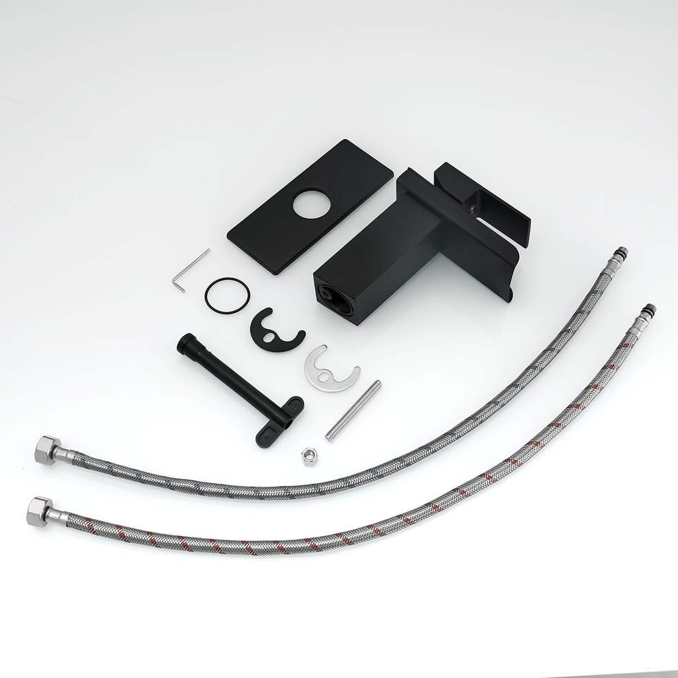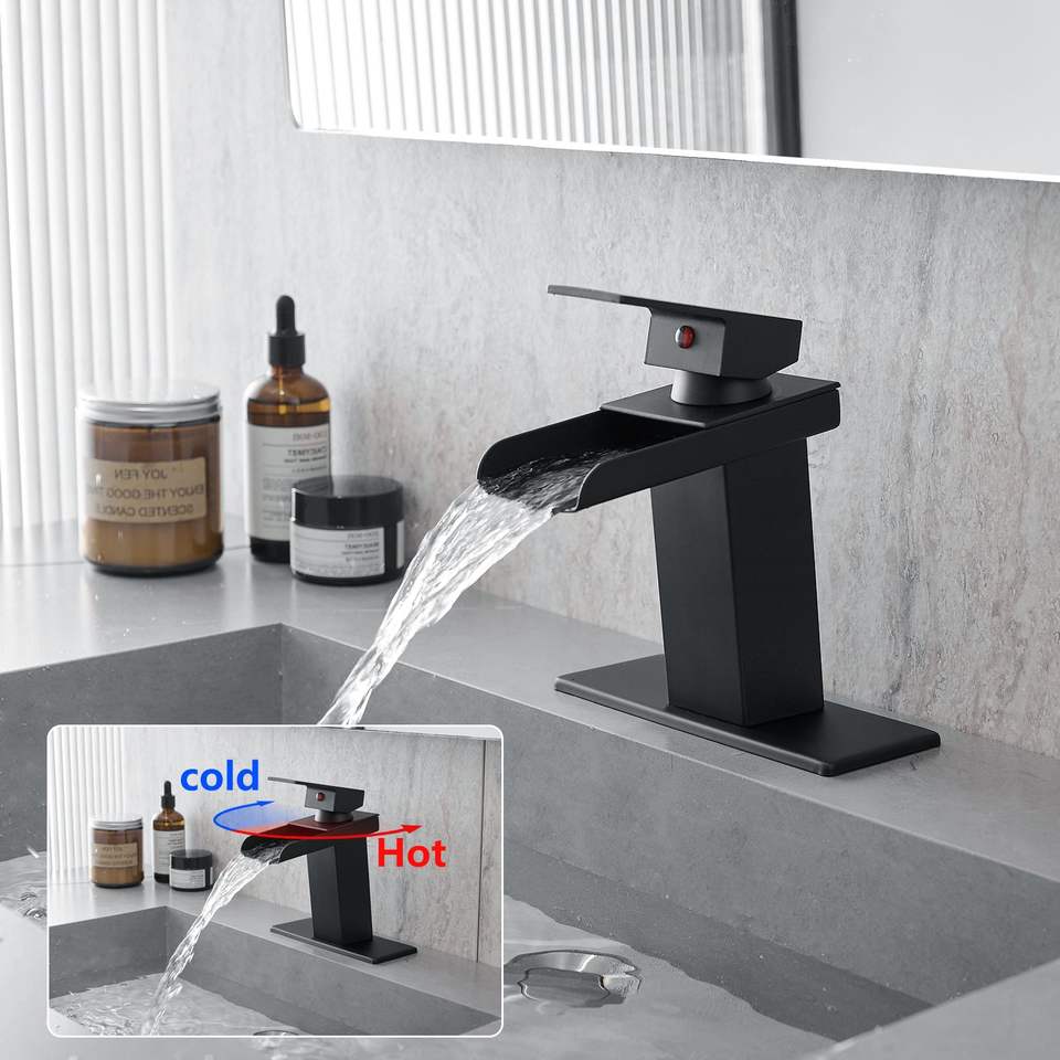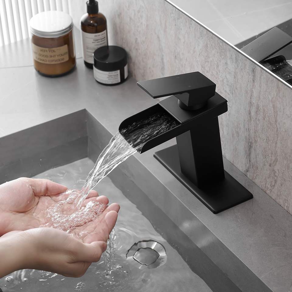 ก๊อกน้ำอ่างล้างหน้าแบบติดตั้งบนเคาน์เตอร์ รุ่น Waterfall Black แบบรูเดียว/สามรู พร้อมก้านโยกเดี่ยว ตามภาพ