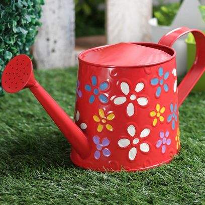 รดน้ําหม้อรดน้ําโลหะด้วยการออกแบบที่เรียบง่ายและหัวฉีดยาวและด้ามจับกลมสําหรับสวนกลางแจ้ง