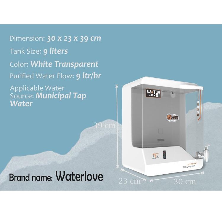 Waterlove เครื่องฟอกอากาศสีขาวใสพร้อมระบบกรองหลายขั้นตอนสำหรับการให้น้ำดื่มบริสุทธิ์และปลอดภัยที่บ้าน