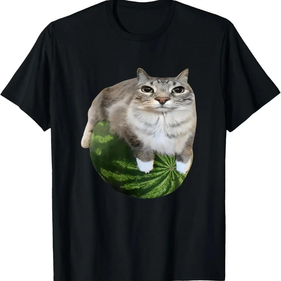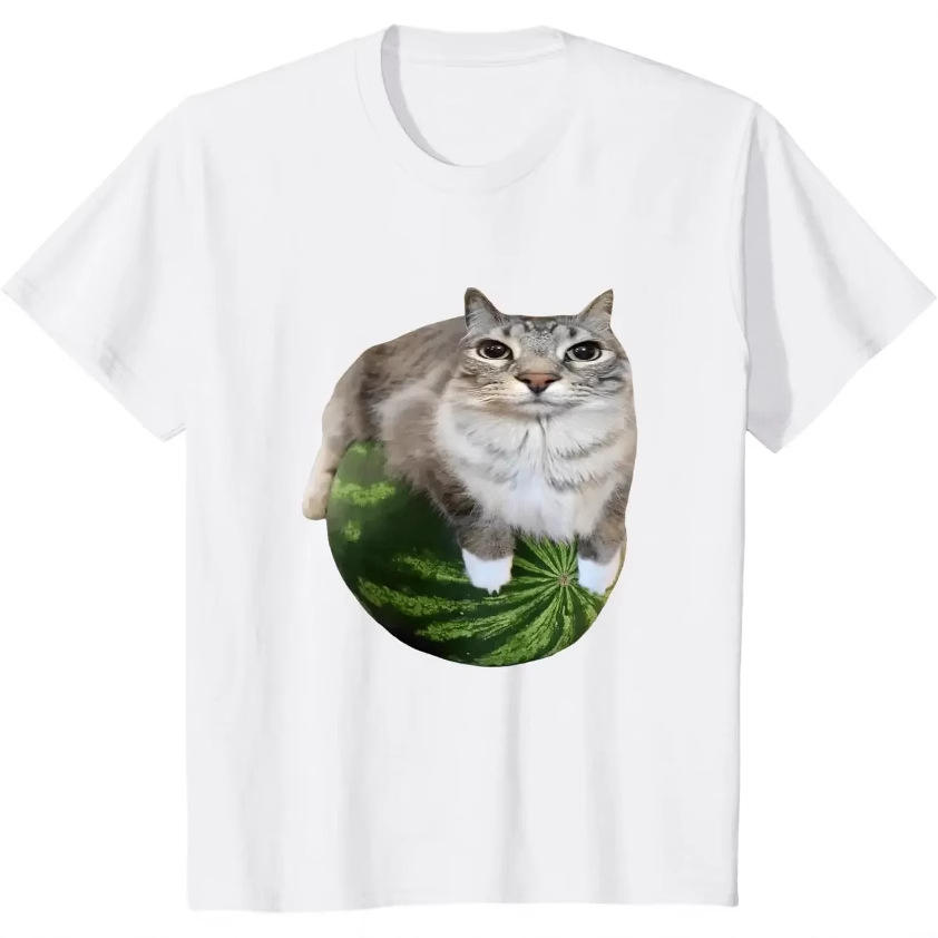 เสื้อยืดแมวเหมียวแมวเหมียวมีมส์เสื้อยืดพิมพ์ลายแตงโมเฮฮาเป็นเสื้อที่ใส่ได้ทั้งชายและหญิงมีสไตล์