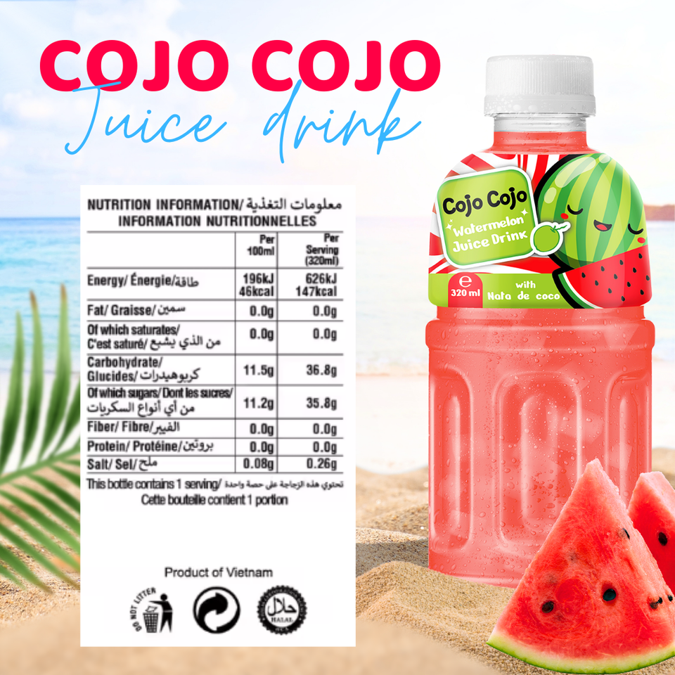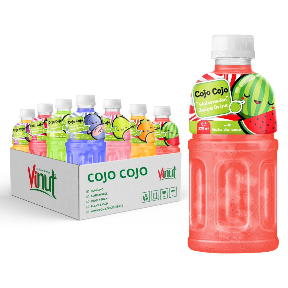 เครื่องดื่มน้ำผลไม้320มล. แตงโม Nata de COCO cojo เครื่องดื่มขายส่งราคาตัวอย่างฟรี OEM OEM ODM ปรับแต่งได้