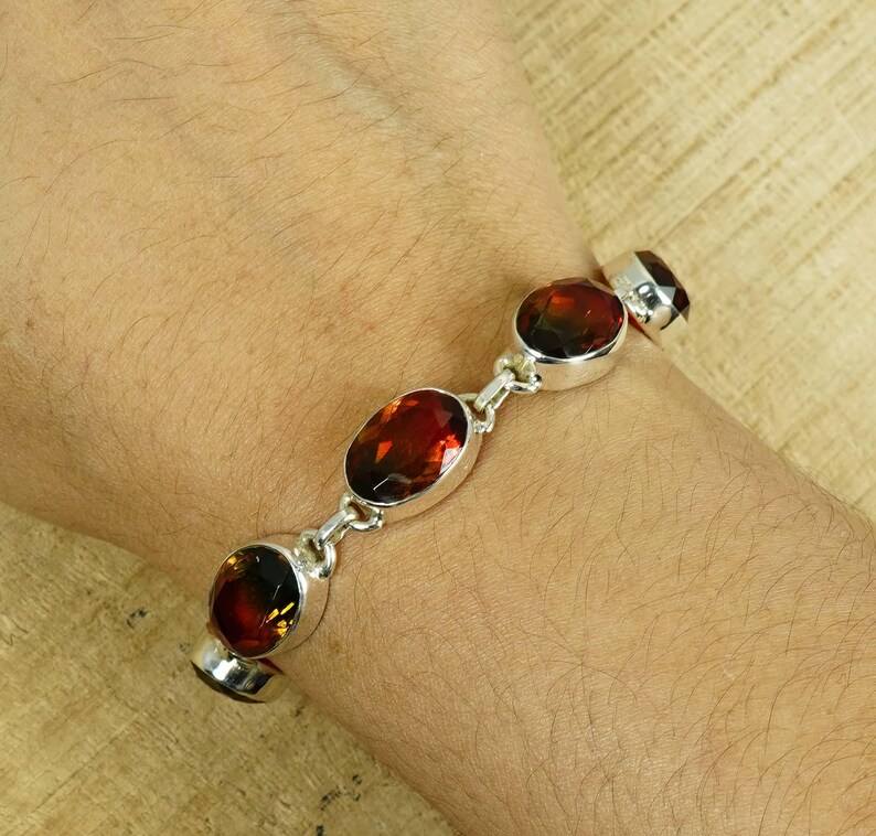 กำไลข้อมือเงินแท้ 925 ประดับพลอยควอตซ์สีแตงโม รูปไข่ ปรับขนาดได้ ทำด้วยมือ เครื่องประดับแฟชั่นสำหรับผู้หญิง ของขวัญ