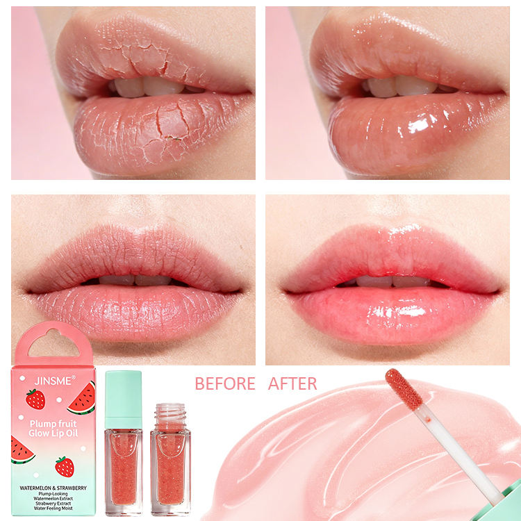 ลิปออยล์แตงโมและสตรอว์เบอร์รี บำรุงริมฝีปากชุ่มชื้น-เปล่งประกายด้วยสารสกัดจากผลไม้ ซอร์บิทอล กลีเซอรีน ลิปกลอสเพิ่มความชุ่มชื้น 7 กรัม สำหรับผิวแห้ง