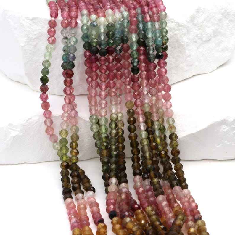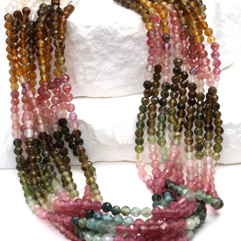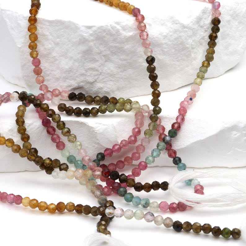ลูกปัดทัวร์มาลีนทรงกลมเจียระไนขนาด 3 มม. สำหรับทำเครื่องประดับ สร้อยข้อมือ สร้อยคอ DIY ลูกปัดอัญมณี