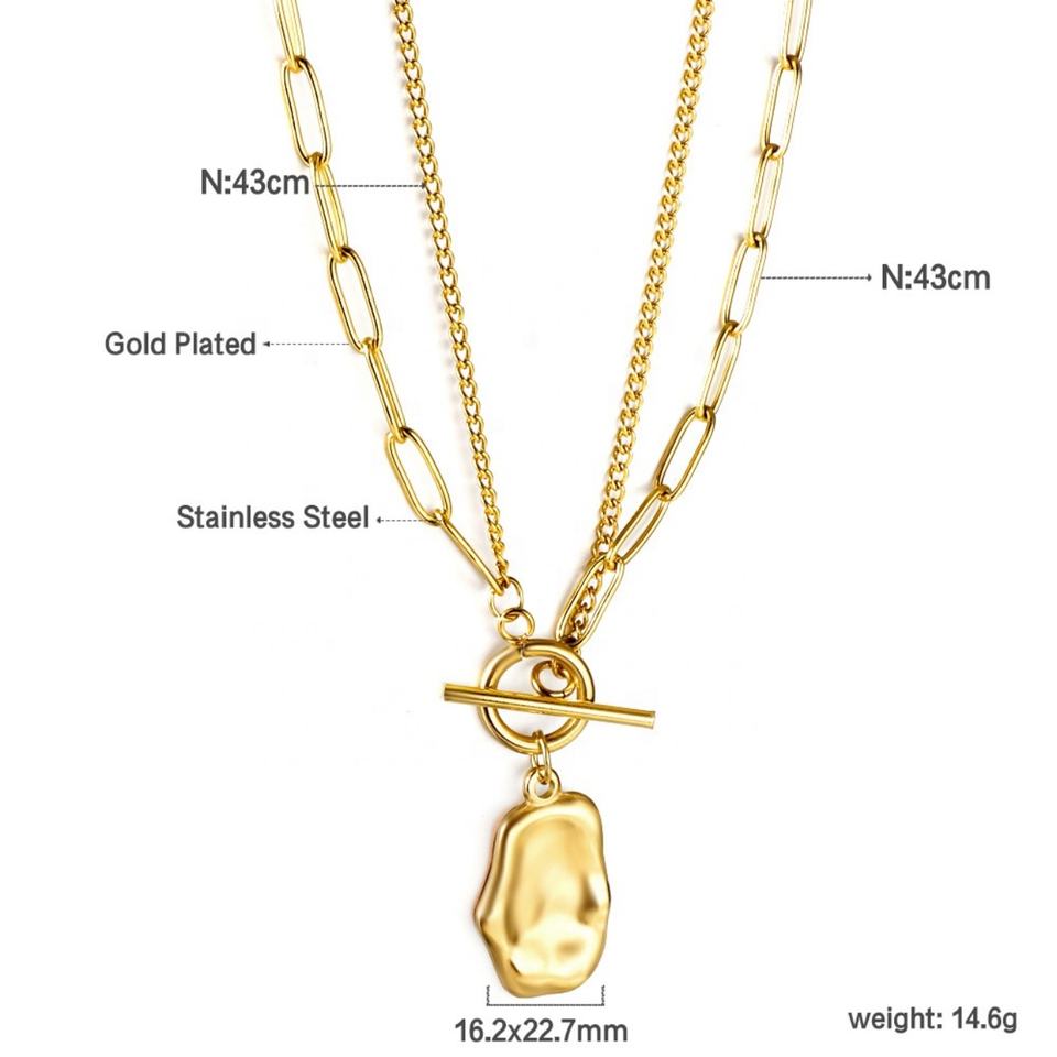 สร้อยคอคู่แฟชั่นสไตล์คิวบา ทำจากสแตนเลสสตีลชุบทอง 18K กันน้ำ รูปทรงไม่สมมาตร