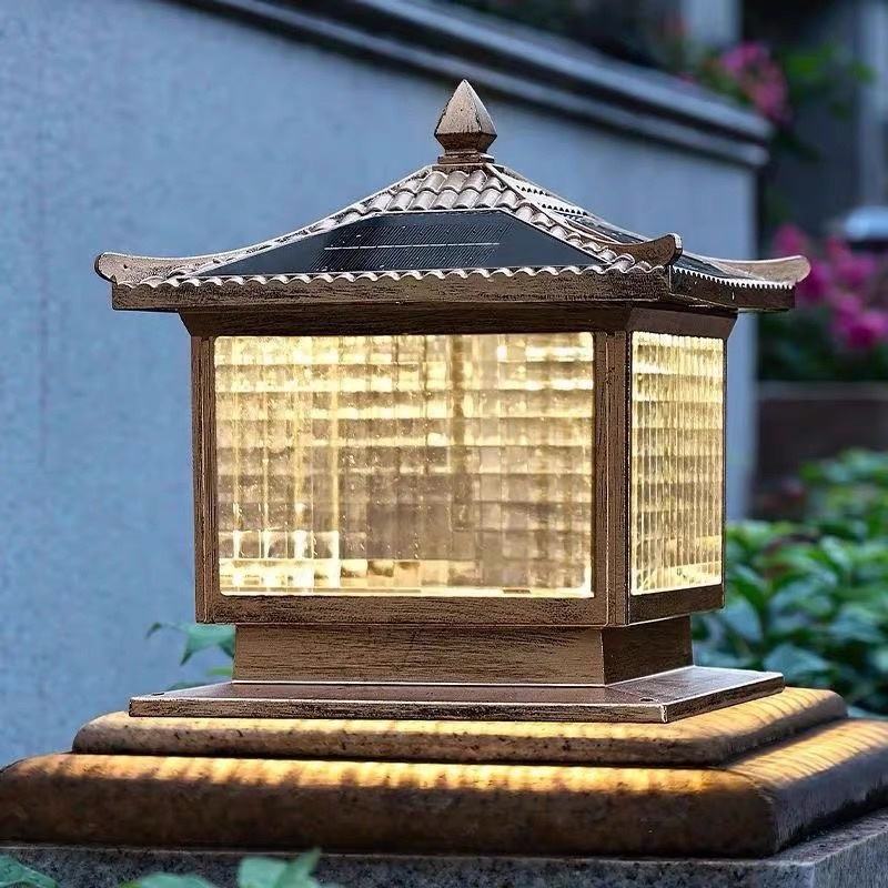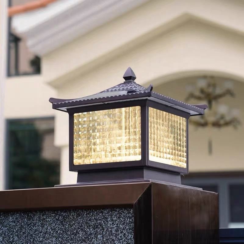 เสาประตูพลังงานแสงอาทิตย์กลางแจ้งอลูมิเนียมกันน้ำสำหรับสวนดอกไม้วิลล่า