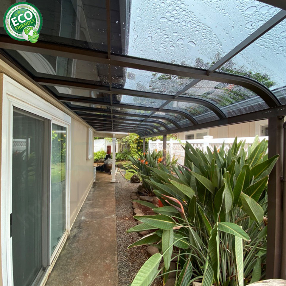หลังคาโพลีคาร์บอเนตกรอบอลูมิเนียมกลางแจ้งกันน้ำโพลีคาร์บอเนต