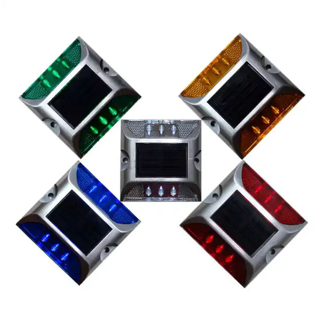 ไฟกระพริบเตือนภัยบนถนนแบบกันน้ำ ทำจากอะลูมิเนียม ใช้พลังงานแสงอาทิตย์ สีเหลืองอำพัน ไฟ LED สีแดงและสีน้ำเงิน สะท้อนแสง
