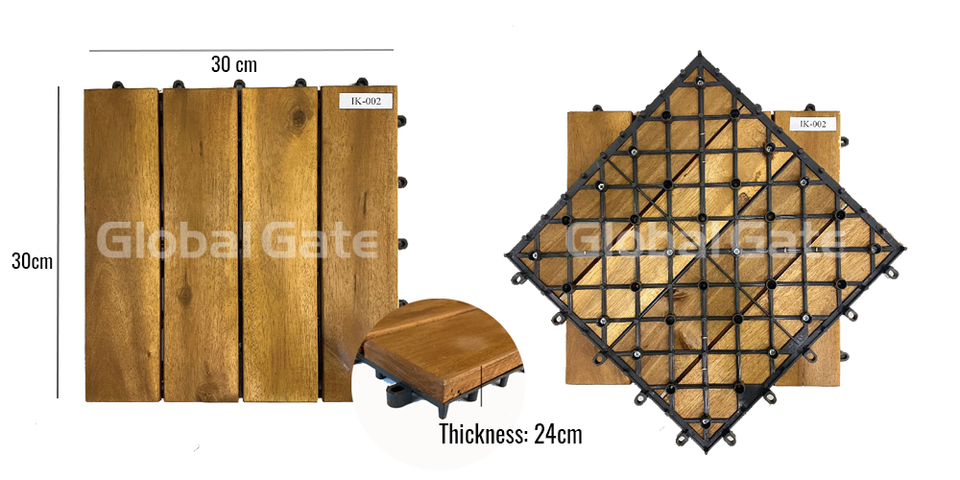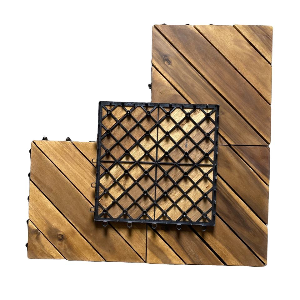 กระเบื้องปูพื้นไม้สี่เหลี่ยมแบบประกบกัน ผลิตจากไม้กระถินเวียดนาม กันน้ำ กันลื่น สำหรับใช้งานกลางแจ้ง รับประกัน 5 ปี