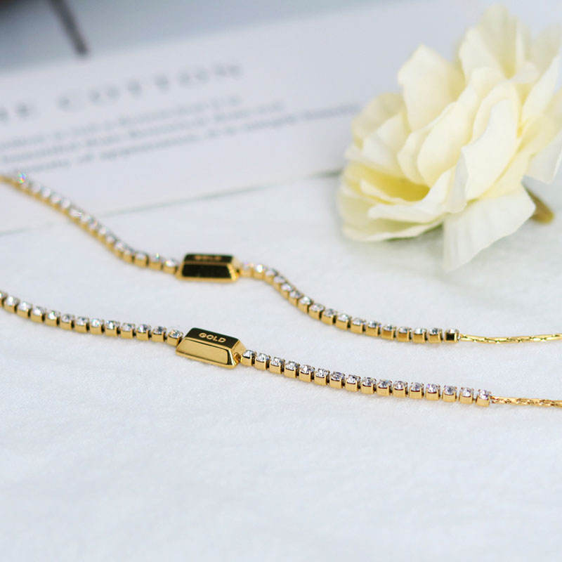 สร้อยข้อมือและกำไลแฟชั่นสแตนเลสสตีลกันน้ำ ป้องกันการหมอง 14K 18K ชุบทอง ประดับทองคำแท่ง สำหรับผู้หญิง