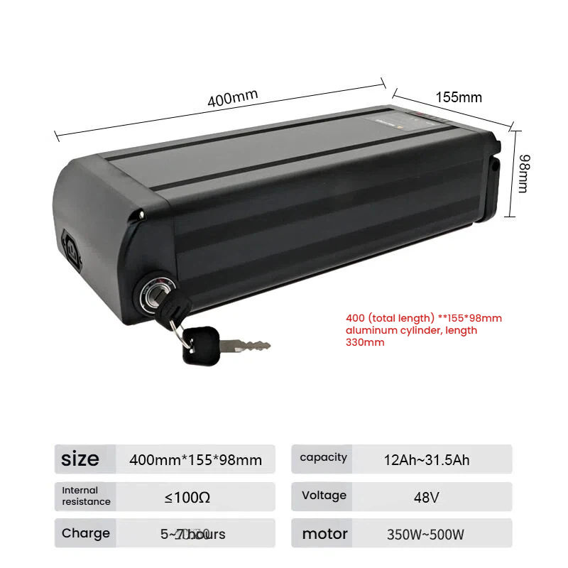 ไฟท้ายจักรยานไฟฟ้ากันน้ำ10.4Ah แบตเตอรี่ลิเธียม48V วางไว้บนแร็คด้านหลังวงจร BMS 1C ปล่อยประจุ Wowei HHJ-1 350W