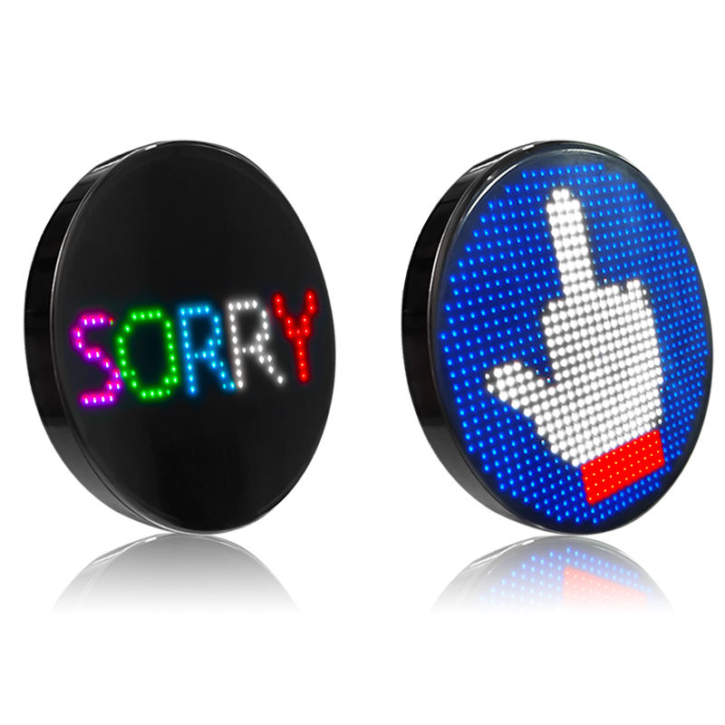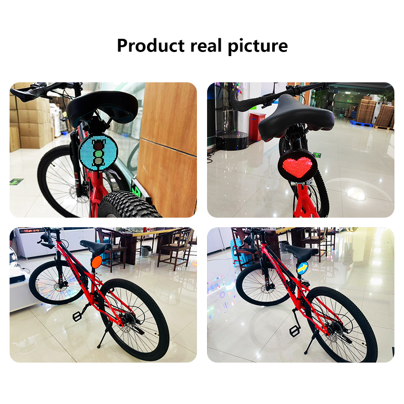 บอร์ด LED จักรยานกันน้ำพร้อมไฟแสดงสีหน้าอิเล็กทรอนิกส์เต็มรูปแบบการเลื่อนแสดงภาพเคลื่อนไหวข้อความส่วนตัวแบตเตอรี่ขับเคลื่อน