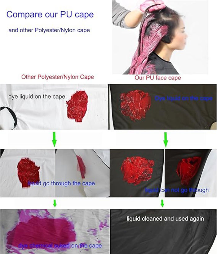 ผ้าคลุมตัดผมกันน้ำ ทนสารฟอกขาว ผิว PU สำหรับช่างทำผมมืออาชีพ ผ้าคลุมย้อมสีผม