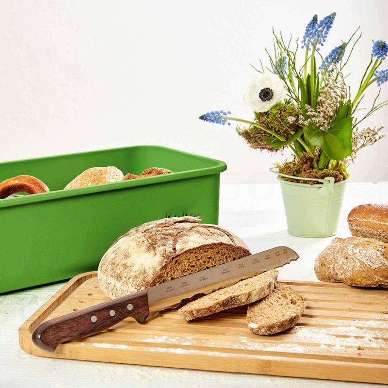 ชามขนมปังพร้อมเขียงและฝาไม้
