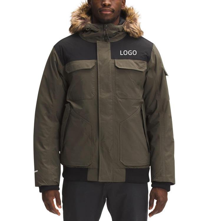 Waterproof Breathable Canvas Stand Winter Men's Ski Jacket Front Pocket Eco-Friendly Anti-Bacterial Reversible Anti-UV Polyester