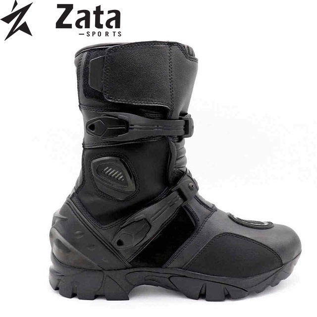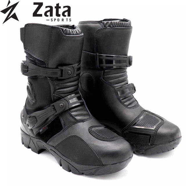 รองเท้าบูทมอเตอร์ไซค์หนังหุ้มเหล็กกันน้ำ ระบายอากาศได้ดี พร้อมสายรัดแบบตีนตุ๊กแกสำหรับผู้ชาย-ราคาถูก