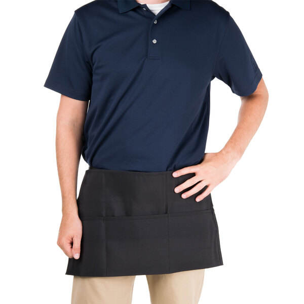 ผ้ากันเปื้อนผ้าใบกันน้ำสำหรับผู้หญิง/ผู้ชายชุดทำงานบริกรร้านอาหารใช้ซ้ำได้มีกระเป๋าสำหรับทำความสะอาดร้านทำงาน
