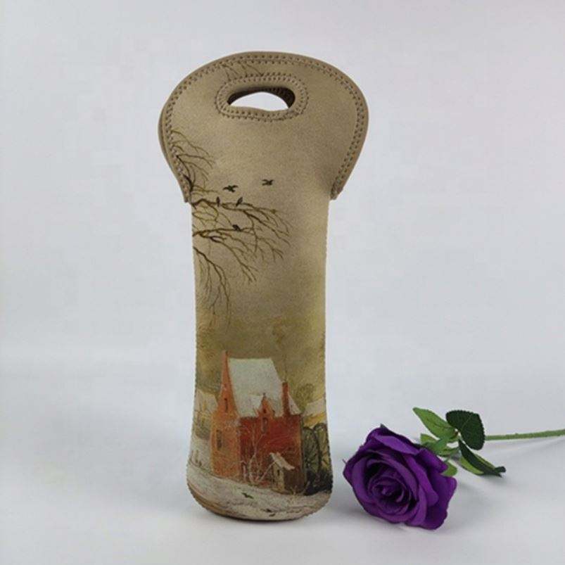 ถุงใส่ขวดไวน์ทำจากนีโอพรีนแบบพกพาหุ้มฉนวนสองชั้นกันน้ำพิมพ์ซับลิเมชันออกแบบโลโก้ได้ตามต้องการ