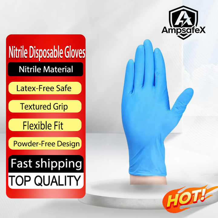 ถุงมือไนไตรล์แบบใช้แล้วทิ้ง AmpsafeX หนา ยืดหยุ่นสูง กันลื่น พร้อมสายรัดข้อมือยืดหยุ่น สำหรับงานอุตสาหกรรมและใช้งานทั่วไป