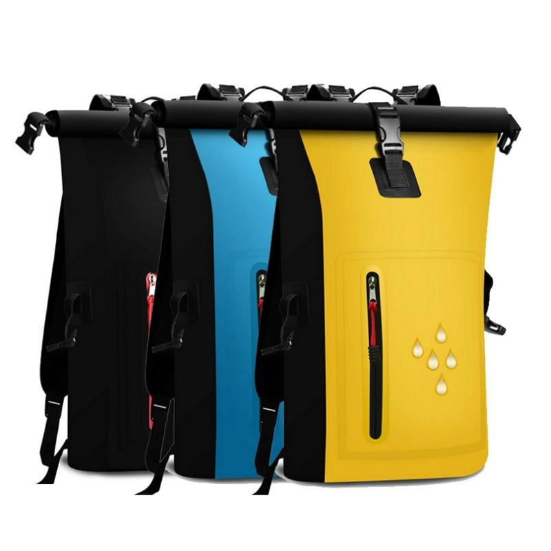 กระเป๋าเป้กันน้ำแบบม้วนปิดปากกระเป๋า กระเป๋ากันน้ำสำหรับมอเตอร์ไซค์ กระเป๋าเป้แห้งสีตามสั่ง ความจุขนาดใหญ่ กระเป๋าเป้ PVC